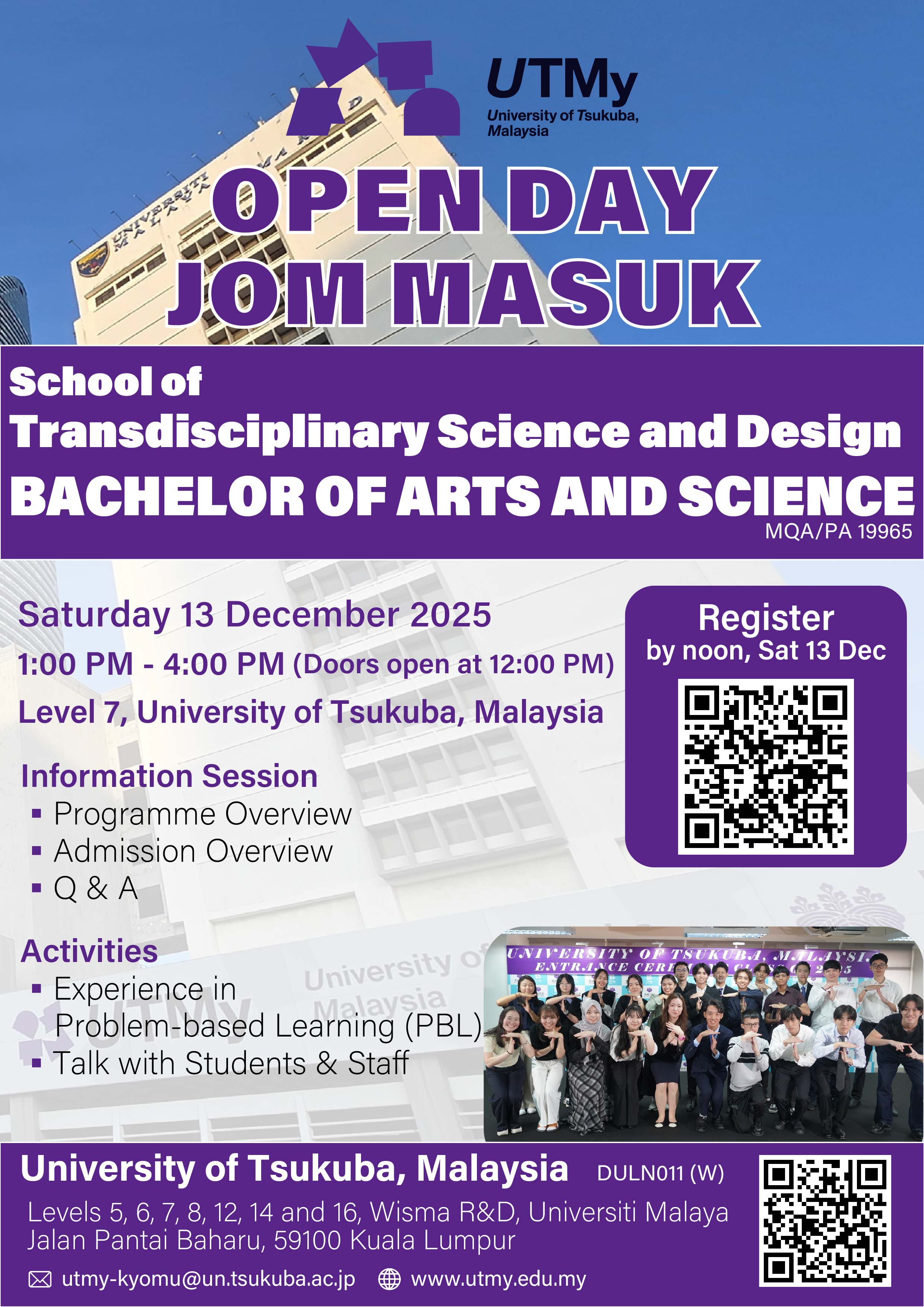 It’s the perfect time to visit us, just before the application period for the September 2026 intake opens in January 2026.